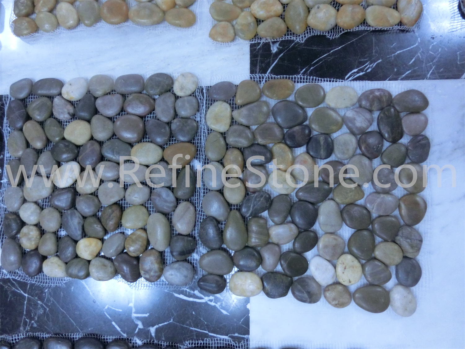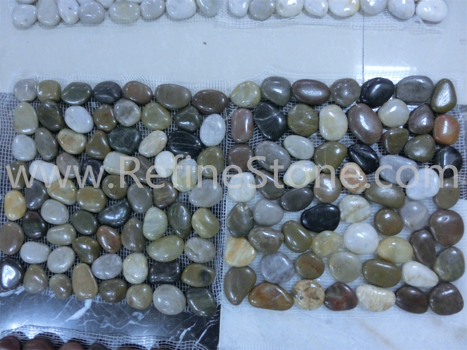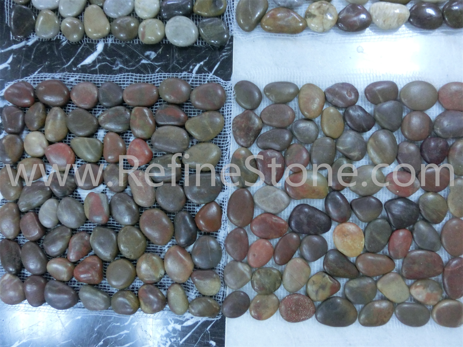 cobblestone on mesh sheets for easy installation and lower installation cost. Available in many designs. You may also send us designs then we are able to customize it for you.