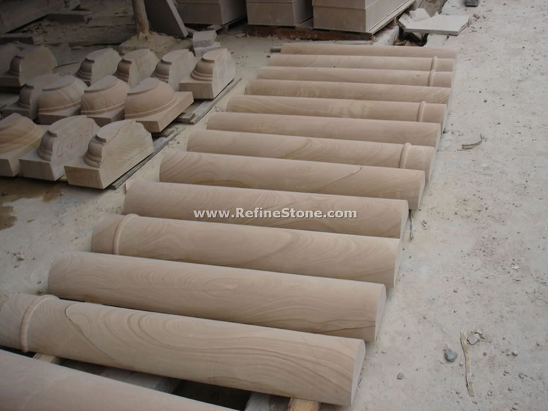 Natural sandstone is a sedimentary rock composed of mainly quartzes so it is often called quartz sandstone. In general, the sandstone has strong resistance to weathering. Iron content contained in sandstone formation contributes to common reddish colors. Natural sandstone was formed in in-land rivers or lakes, so it may contain certain visible fossils patterns. The most popular finish for cut sandstone is honed (matte) or raven, depending on the different applications. Sandstone can be quarried in large blocks and is commonly used in the architectural project where large scale exterior decoration is needed, e.g., bench, vase archway. Sandstone can also be used to make columns, fireplaces, pavers and wall bricks.