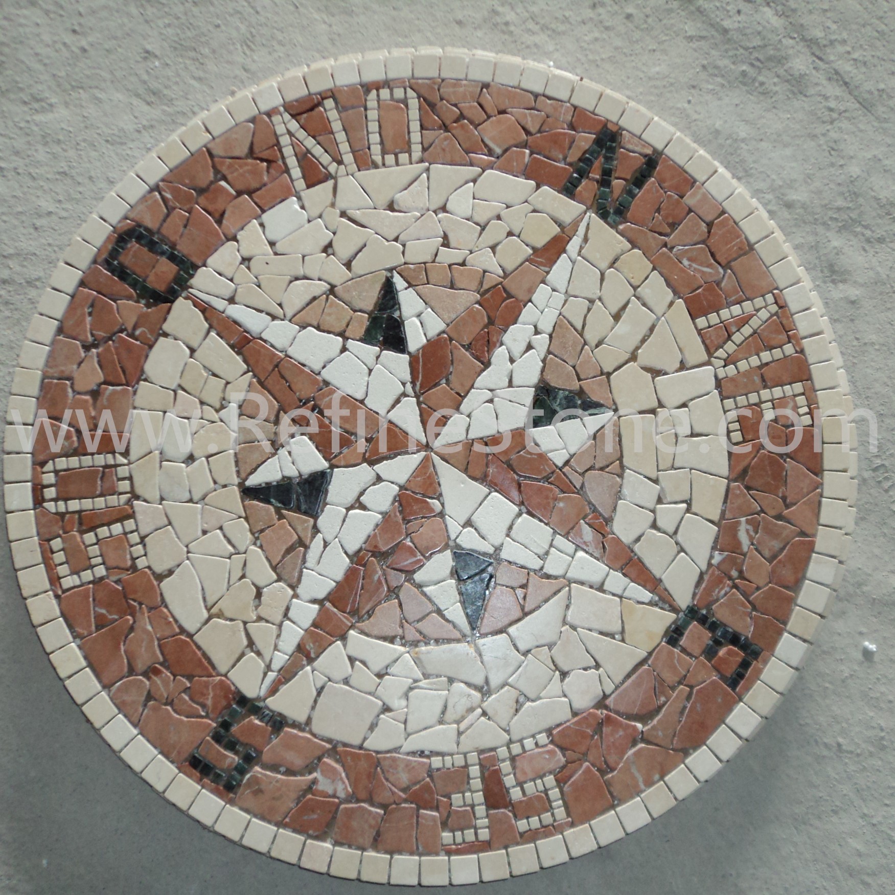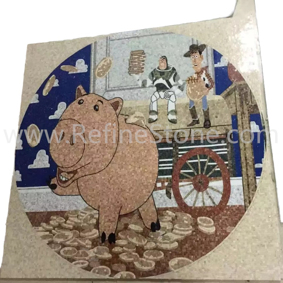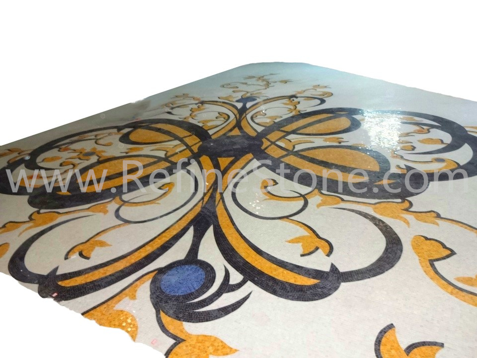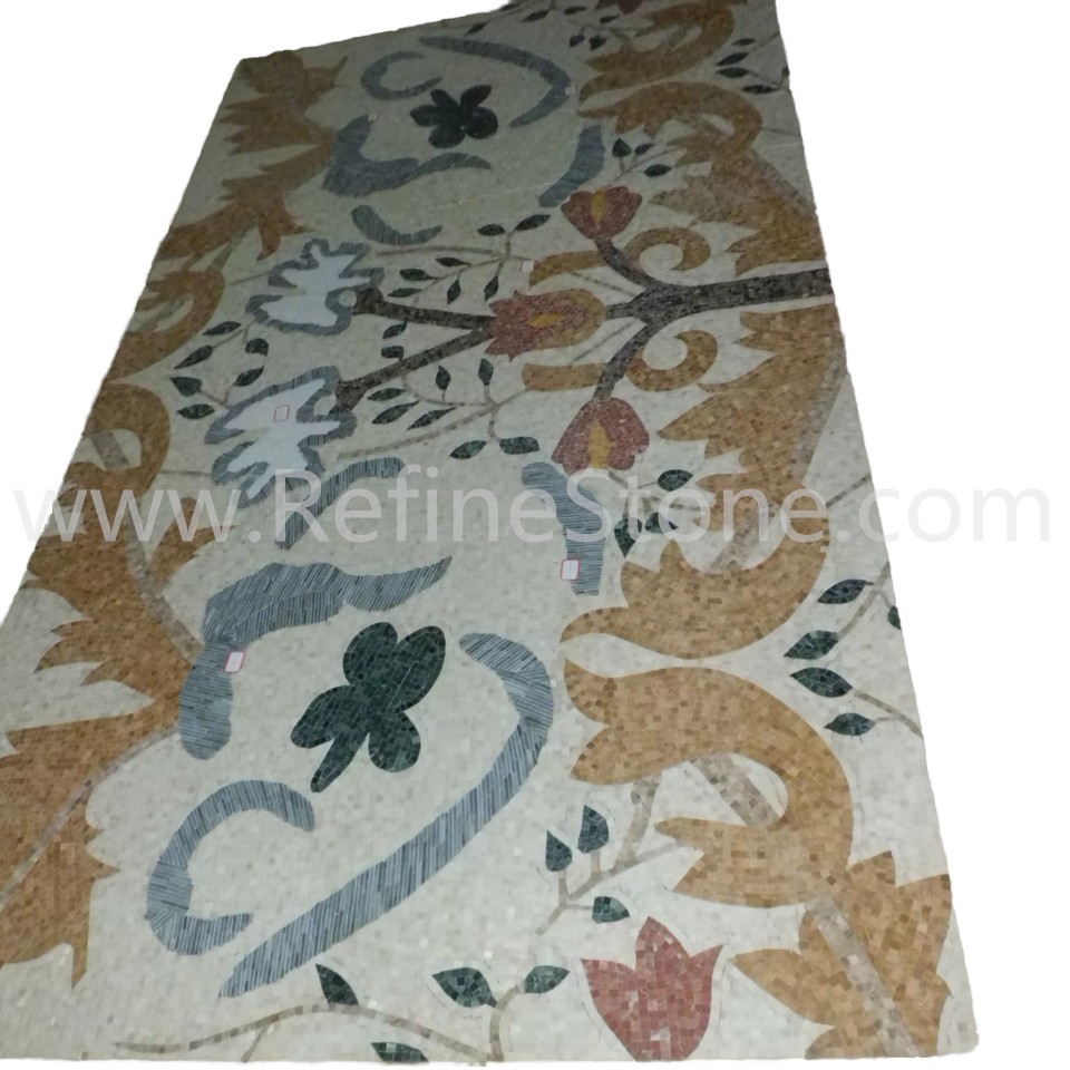 A set of marble or other stone mosaics in proper mosaic designs have broad applications. More and more mosaic floors, mosaic ceilings, mosaic walls and outdoor mosaic paving are seen in modern building construction projects. Refine Industrial Co.,LIMITED designs and produces hundreds of beautiful styles of the stone mosaics, including marble mosaic, granite mosaic, onyx mosaic, travertine mosaic and mixed stone mosaic, in the form of stone mosaic pattern, marble mosaic medallion, marble mosaic tiles, stone mosaic arts and stone mosaic border. All our stone mosaics are mounted on sheets and ready for installations. Our stone mosaics are fully customizable in dimension, chip color, chip size and chip shape. We have large production capacities for the production of stone mosaic items. Special discounts on large orders of all stone mosaic products.