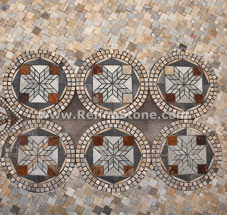 Mosaic and pattern are broadly used for indoor decoration and bath room etc.  China Refine Industrial Co.,LIMITED provides the FIRST GRADE quality slate mosaic , slate border and slate pattern.